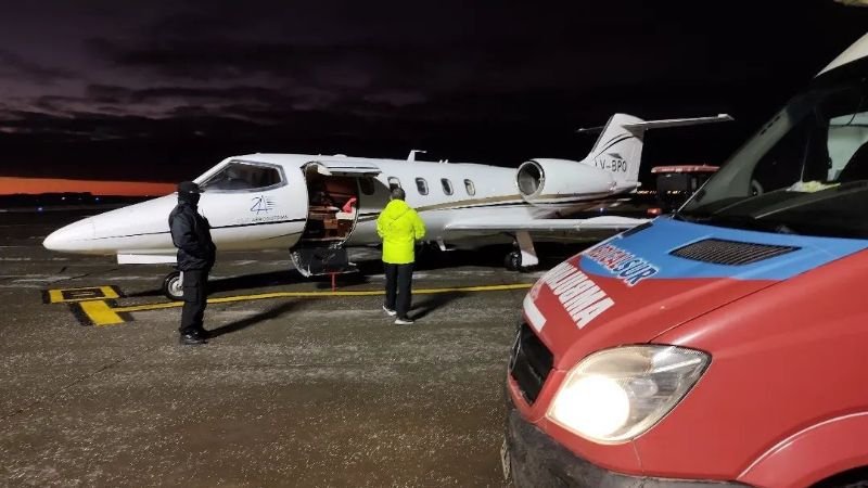 La aeronave aterrizó en el aeropuerto de San Fernando a las 22:48, y la paciente fue trasladada al Sanatorio Güemes de la Ciudad Autónoma de Buenos Aires, donde será sometida a una cirugía.