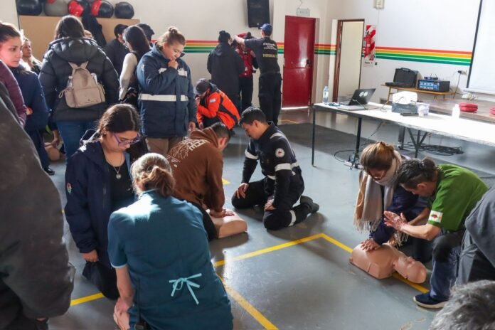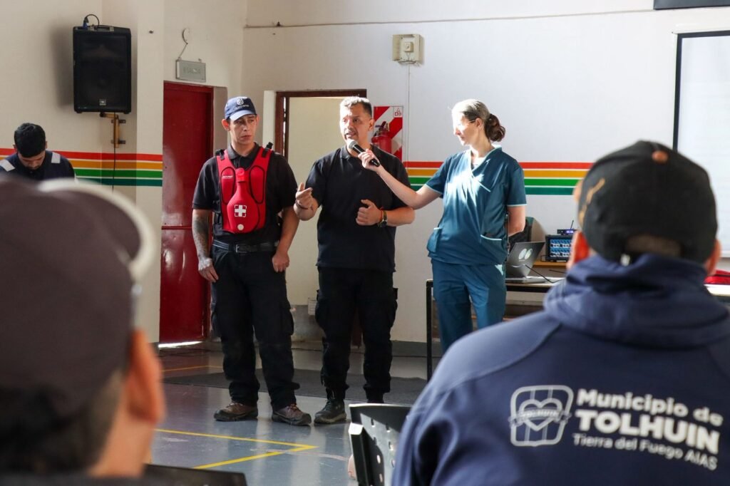 La capacitación fue organizada de manera articulada junto a integrantes de la Comisión de Auxilios, Defensa Civil Tolhuin, el Centro Modular Sanitario Tolhuin y Bomberos Voluntarios Tolhuin, consolidando un trabajo conjunto entre distintas instituciones vinculadas a la prevención y la atención de emergencias en la ciudad.