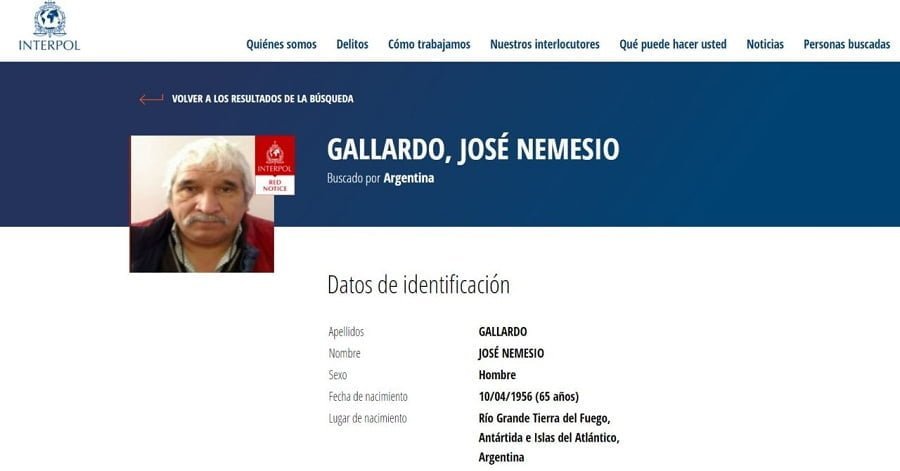 La Organización Internacional de Policía Criminal (INTERPOL) publicó en las últimas horas a través de su sitio web oficial el «alerta roja» y pedido de captura que pesa sobre José Nemesio Gallardo, el presunto abusador que se encuentra prófugo de la Justicia fueguina.