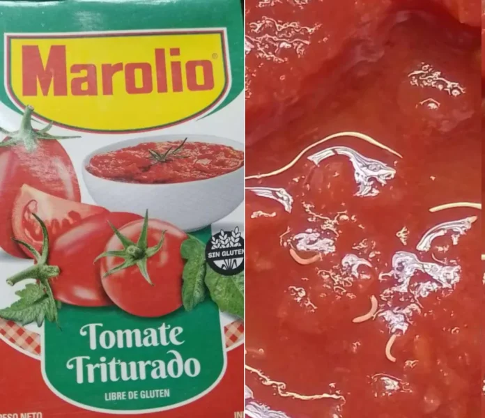 La Administración Nacional de Medicamentos, Alimentos y Tecnología Médica (ANMAT) emitió una advertencia preventiva ante la detección de organismos similares a gusanos en envases de tomate triturado marca Marolio, libre de gluten, de 500 gramos, correspondiente al lote L25114 (vencimiento abril 2027).