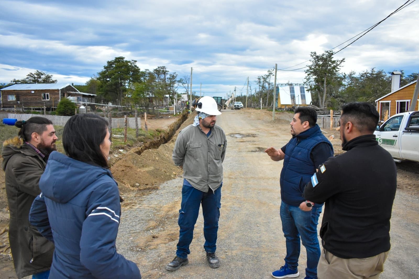 El Intendente Daniel Harrington, acompañado de la Secretaria de Gobierno Ana Paula Cejas, el Arq. Hugo Gómez y el Director de Obras Públicas Jorge Bascuñan recorrieron los avances significativos de la obra de infraestructura de gas en los B° "Campo de Doma" y "Ex Matadero". La misma beneficiará a alrededor de 200 tolhuinenses y a las urbanizaciones cercanas, siendo parte de una inversión gestionada con fondos propios del Municipio.