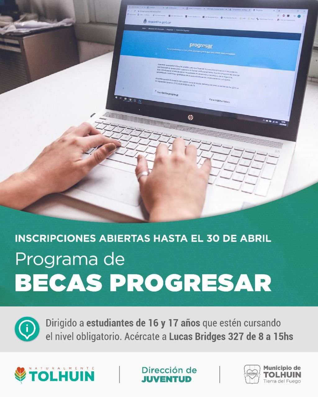 Los/as interesados/as en inscribirse, deberán acercarse al edificio central del Municipio, ubicado en Lucas Bridges 327 donde personal de la dirección pondrá a disposición las herramientas digitales necesarias, asistiendo en lo que se requiera para completar el formulario digital de las becas.