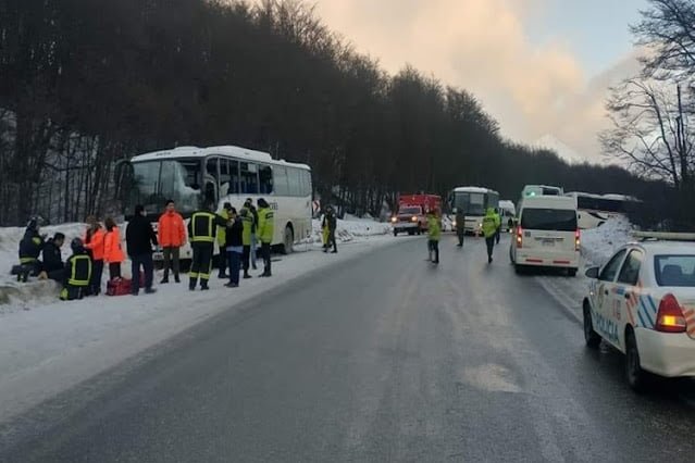 El siniestro se registró entre dos colectivos de transporte de turistas, de las empresas Rumbo Sur y de Pingüino Expediciones.