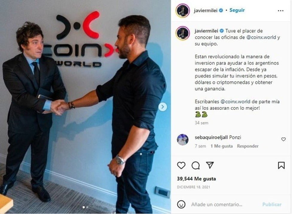 En el caso de COINX, empresa que Javier Milei aconsejo y arengo a que pongan su dinero con buenos rendimientos monetarios, no cumplió con sus clientes y no le devolvieron el dinero que invirtieron. Vencidos sus contratos, se los interpelo, incluso a Javier Milei, responsable solidario de este incumplimiento contractual para que puedan los damnificados, cobrar algo de la plata que pusieron voluntariamente.