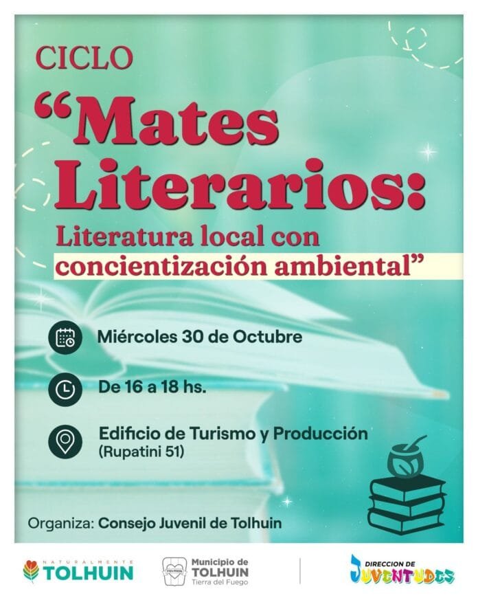 El Consejo Juvenil de Tolhuin invita a jóvenes de la comunidad al primer encuentro del ciclo “Mates literarios: Literatura local con concientización ambiental”, un espacio de reflexión y debate que tiene como objetivo combinar literatura y conciencia ecológica.