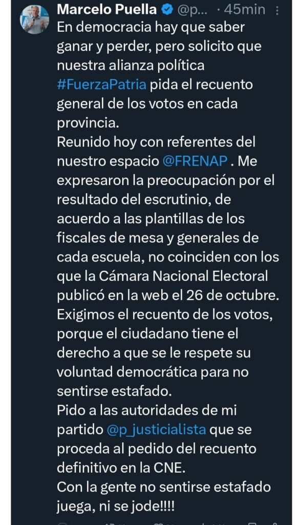 En Buenos Aires, la provincia con mayor peso electoral del país, el foco está puesto en los más de 200.000 votos nulos y otros 6.000 recurridos o impugnados. Allí, el libertario Diego Santilli superó por unos 46.000 votos al peronista Jorge Taiana, una diferencia que no parece suficiente para alterar el nombre del ganador, aunque sí podría modificar la distribución de bancas.