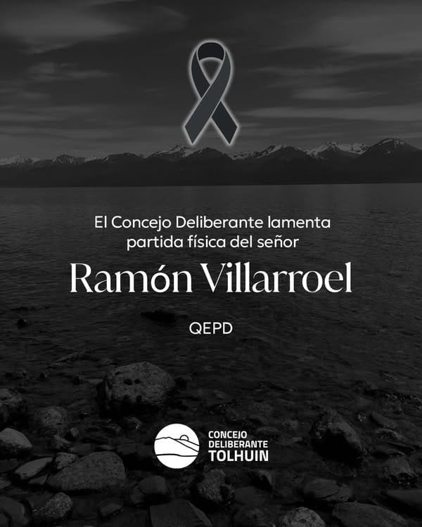 El Concejo Deliberante de Tolhuin lamenta el fallecimiento del Sr. Ramón Villarroel, quien en vida se desempeñara como Subsecretario de Medios Públicos de la provincia, así como parte de la Televisión Pública Fueguina.En este doloroso momento, expresamos nuestras sinceras condolencias a su familia, amigos y seres queridos.