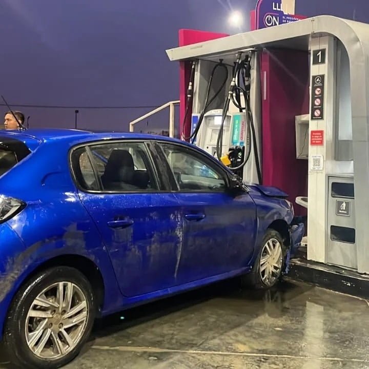 En el lugar el rodado Peugeot 208 de color azul impactó contra el surtidor, debiendo activarse un protocolo de emergencia para este tipo de casos y evitar la combustión.