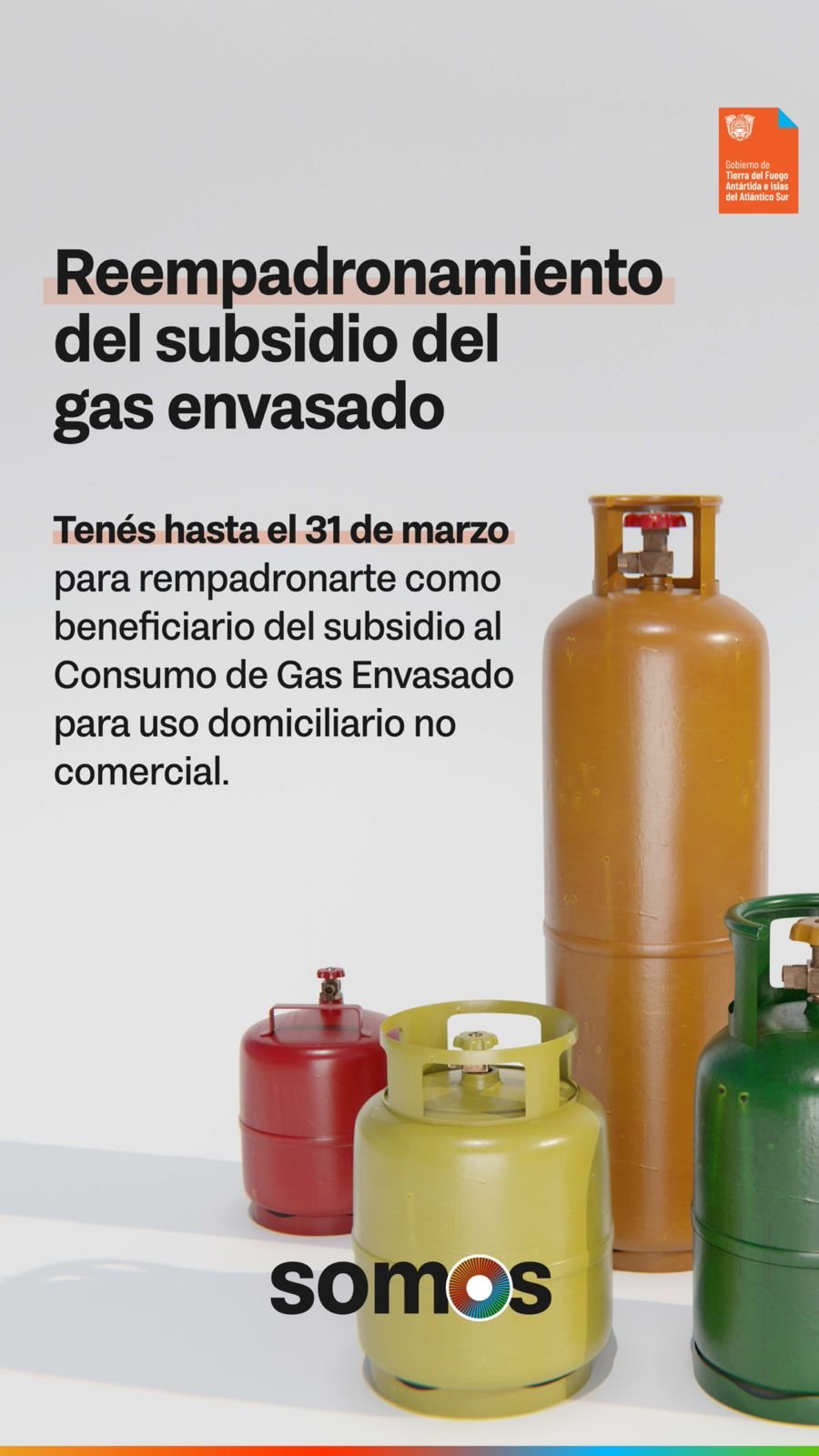 Se recuerda que el mencionado subsidio está destinado a aquellas personas que no cuentan con distribución de gas natural domiciliaria. El consumo no debe estar destinado al desarrollo de actividades comerciales y/o con fines de lucro.
