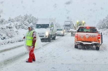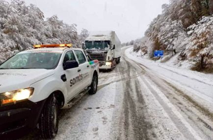 “Estamos pidiendo la obligatoriedad del uso de cubiertas de invierno para salir a la Ruta Nacional, cadenas en el transporte pesado, debido a las fuertes precipitaciones de nieve que tenemos en el sector. Tenemos maquinarias de Vialidad Nacional realizando la asistencia a camiones que están cruzados en el sector del kilómetro 30, zona de Tierra Mayor”, amplió el funcionario.