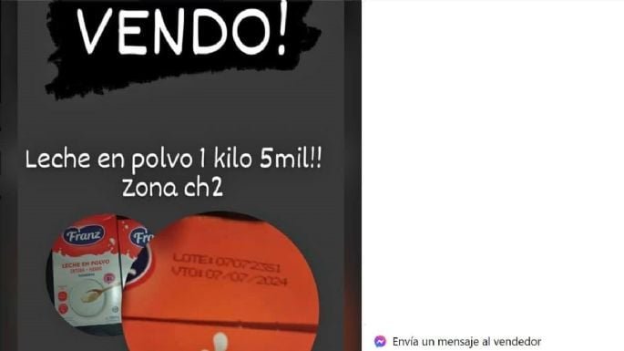 “Entramos a Marketplace, pusimos ‘leche en polvo’ en el buscador y casualmente salían los mismos productos que se estaban denunciando y que habían sido repartidos por las fuerzas armadas en la provincia. La misma marca. Pactamos una compraventa y pudimos comprobar que eran las mismas leches que entregaba el Gobierno a los comedores”, expuso en declaraciones con Aire Libre.