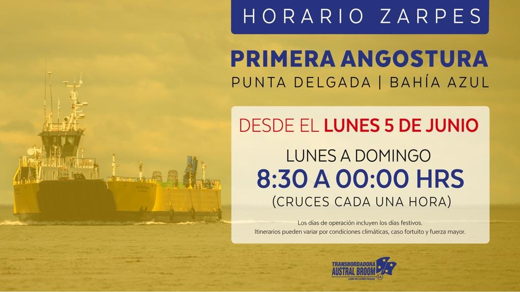 La única empresa que presta servicios en el Estrecho de Magallanes, para realizar el cruce entre Punta Delgada y Bahía Azul, confirmó hoy que desde el lunes operará con sus horarios de invierno.