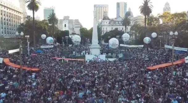 La convocatoria, que comenzó a las 16:00 horas, superó las expectativas de los organizadores. Organizaciones de Derechos Humanos, movimientos sociales y familias autoconvocadas colmaron el histórico paseo frente a la Casa Rosada.