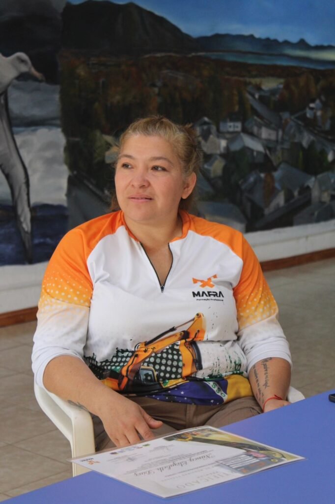 Nancy Díaz cuenta además con formación en oficios, habiéndose capacitado como electricista y soldadora en el Centro de Artes y Oficios, y actualmente se desempeña como trabajadora del Municipio de Tolhuin.
