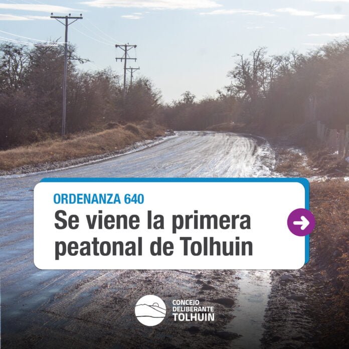 Asimismo, la Ordenanza 640 establece que la futura 1° peatonal de Tolhuin, antigua vía de ingreso y egreso a la ciudad, estará destinada a actividades recreativas, culturales y de fomento al turismo, comercio de artesanos y productores locales y al esparcimiento de la comunidad en su conjunto.