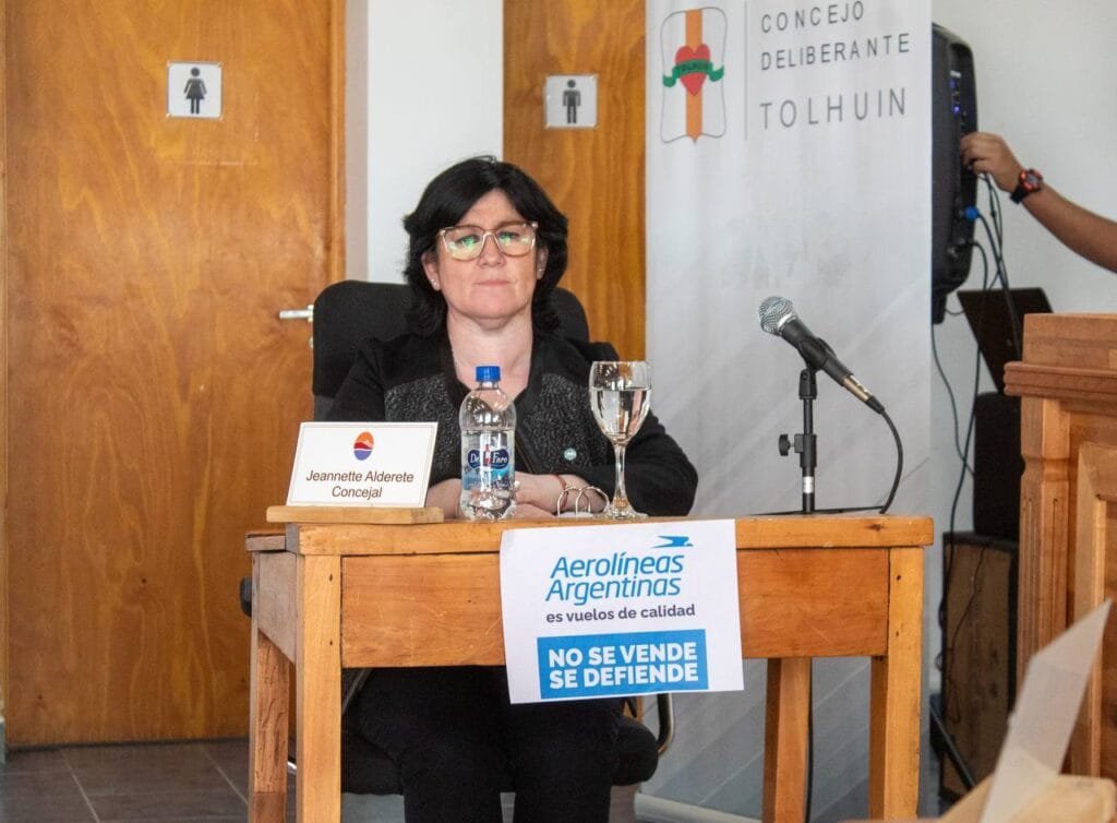 Asimismo, la vicepresidenta 1° concejal Jeannette Alderete Gallardo hizo uso de la palabra y durante su alocución hizo referencia a los intentos por parte del gobierno nacional de privatizar la aerolínea de bandera, expresando el descontento y desaprobación ante esta medida por parte de todos los ediles de los bloques PJ y Sol de Mayo.