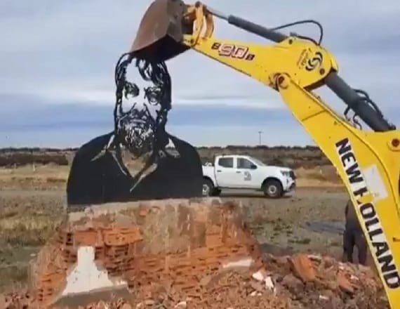 El Gobierno nacional ordenó la demolición del monumento en homenaje a Osvaldo Bayer, ubicado al costado de la Ruta Nacional Nº 3, en el ingreso norte de la ciudad de Río Gallegos, capital de la provincia de Santa Cruz. El acto vandálico se produjo hoy, martes 25 de marzo de 2025.