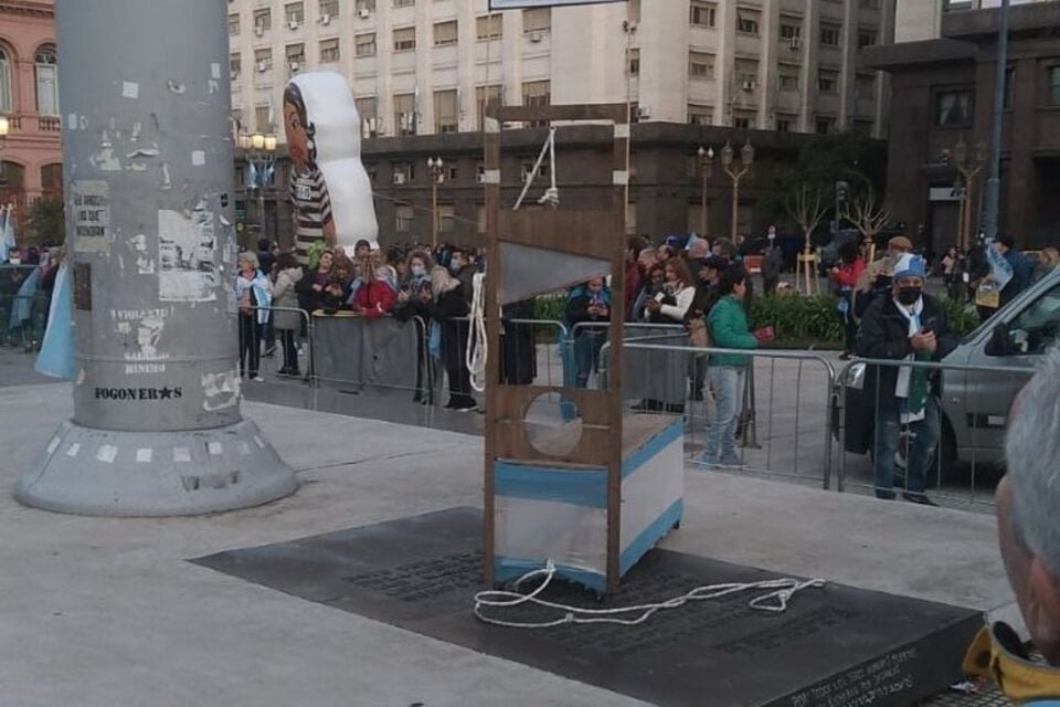 La guillotina, como exhibición, continúa una serie de expresiones de ese tono en las marchas de la oposición. En 2021, durante la pandemia de Covid-19, se mostraron bolsas mortuorias con los nombres de varios referentes del Frente de Todos, mientras que en el tractorazo del 23 de abril de este año pudieron verse muñecos con los rostros del presidente Alberto Fernández y la vicepresidenta Cristina Kirchner colgados de una horca.