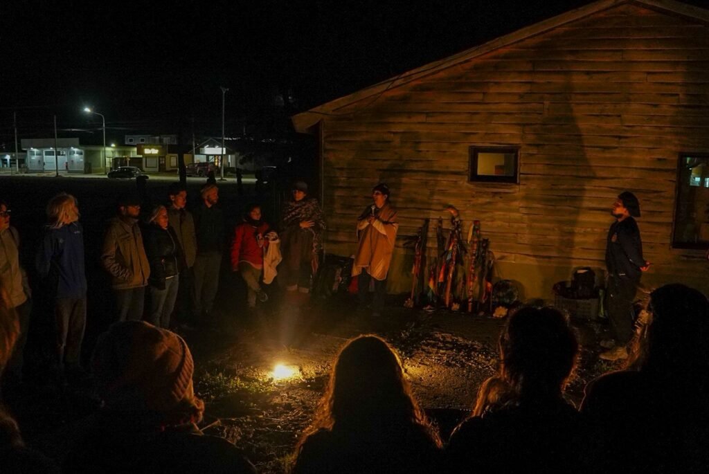 Guiada por integrantes de la Comunidad Selk’nam Rafaela Ishton, la vigilia incluyó palabra, intercambio y fuego ceremonial, configurando un espacio de profundo respeto y transmisión cultural. Desde el Municipio estuvo presente el Director de Cultura, Alejandro Machuca, quien destacó y agradeció la apertura de la comunidad anfitriona y su permanente labor por la recuperación de la memoria ancestral.
