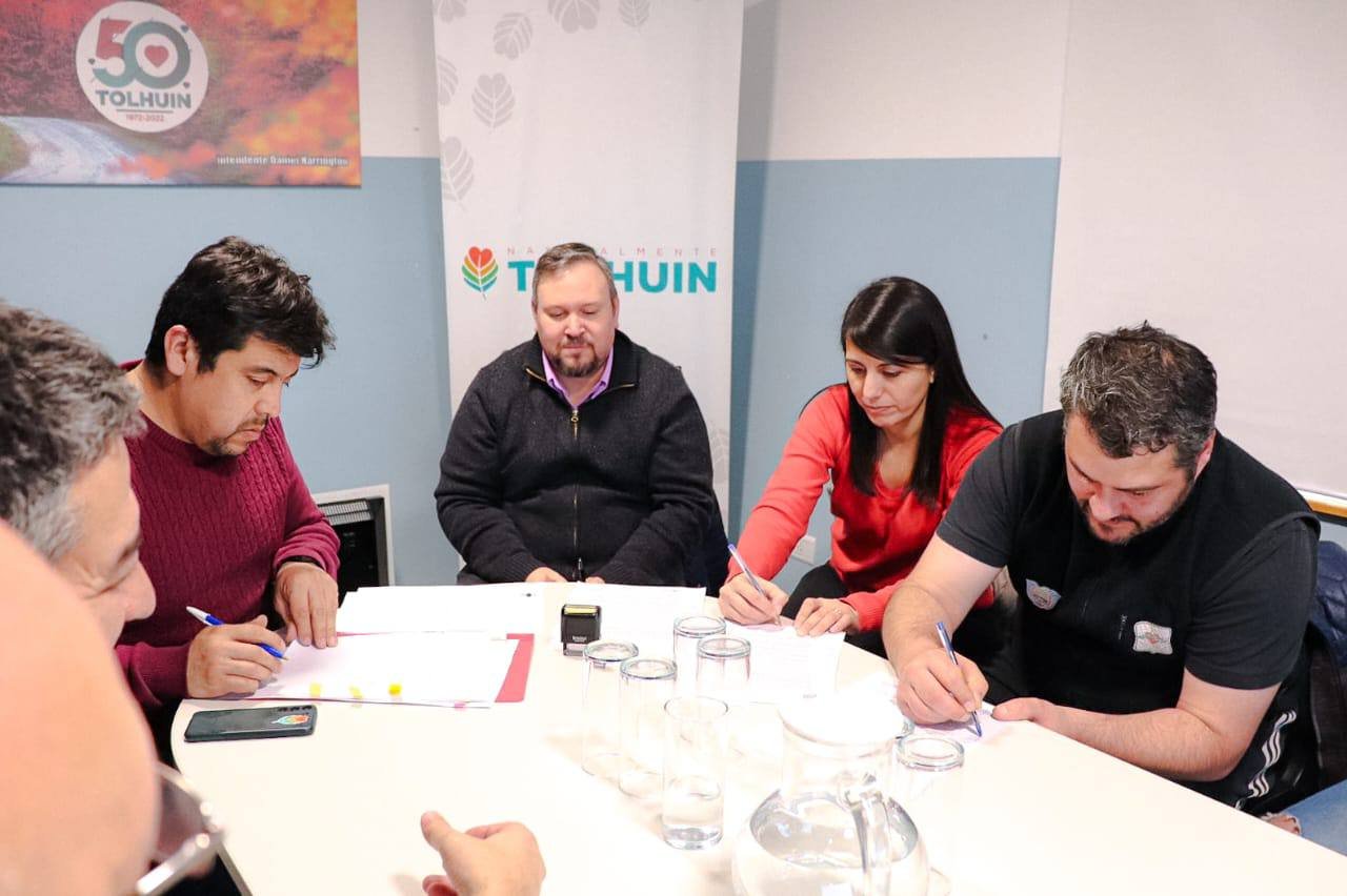 El Municipio de Tolhuin, representado por el intendente de la ciudad, Daniel Harrington se reunió con representantes de los gremios ATE y UPCN para firmar un acuerdo salarial que beneficiará a los trabajadores municipales de Tolhuin.