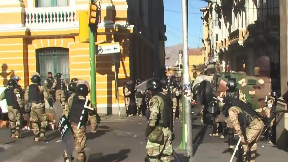 Antes, el expresidente Evo Morales denunció un supuesto “acuartelamiento” de las Fuerzas Armadas y personal militar cerró la plaza Murillo en La Paz.