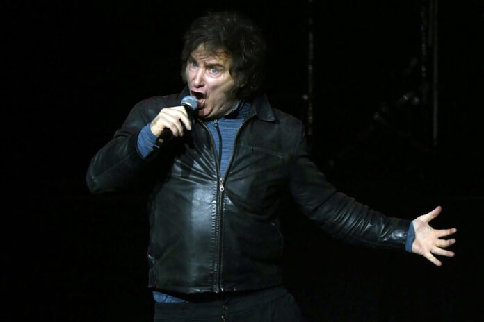 El presidente Javier Milei inició su acto musical en el Movistar Arena, donde presentó ayer por la noche su nuevo libro “La construcción del milagro”, al ritmo de Demoliendo Hoteles de Charly García.