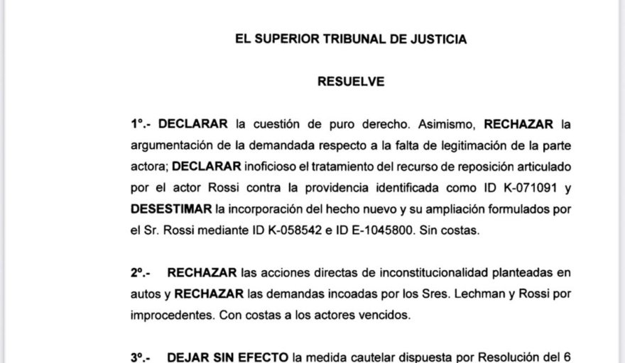 El STJ dictó sentencia en los expedientes acumulados “Lechman c/ Provincia” (4646/24) y “Rossi c/ Provincia” (4649/24), resolviendo: