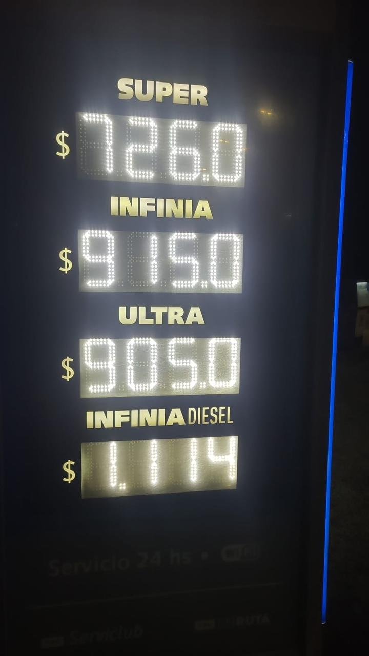 En Tierra del Fuego, los combustibles YPF pasaron a costar $ 726 la nafta Súper, $915 la Infinia, $905 el Gasoil y $1114 el Diésel Infinia.