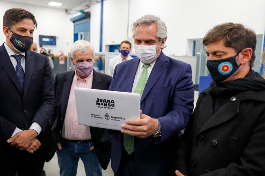 El presidente Alberto Fernández encabezó el acto de presentación del Plan Juana Manso que buscará dotar de conectividad a miles de estudiantes de todo el país, con una inversión estimada en 20 mil millones de pesos, y que prevé la distribución de 633 mil netbooks a estudiantes de escuelas secundarias, en entregas mensuales que se iniciarán en julio próximo.