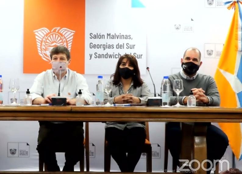 Gustavo Melella efectuó el anuncio de llamado a licitación durante una conferencia virtual, a través de Zoom, en la cual estuvo acompañado por el Jefe de Gabinete Agustín Tita, la presidente del IPVyH, Leticia Hernández y la ministra Castillo.
