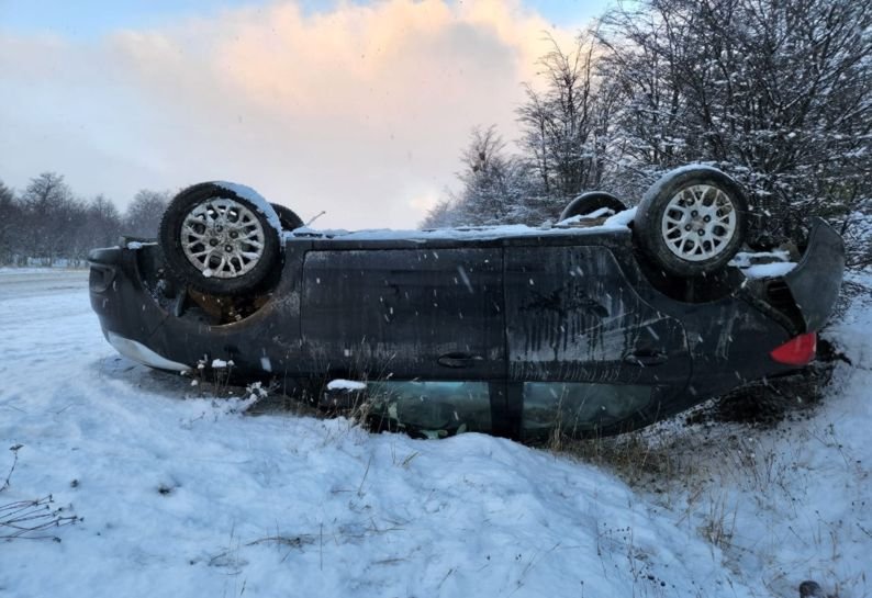 El primero de ellos se produjo a las 12,30, a la altura del kilómetro 2.976, muy cerca de la localidad de Tolhuin. Allí, un rodado Kia, modelo Sportage volcó con 5 ocupantes en su interior. Fueron identificados como Rubén Osvaldo Giovani (conductor), María Rosa Agüero, Catalina Ortiz, Raúl Eduardo Olivera y Consolación Villarreal.