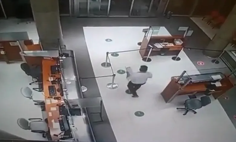 El video se registró a la madrugada del sábado, a eso de las tres de la mañana. En él se puede ver cómo un empleado le toma los datos a una persona que nunca se ve y, además, le ofrece una silla de ruedas.