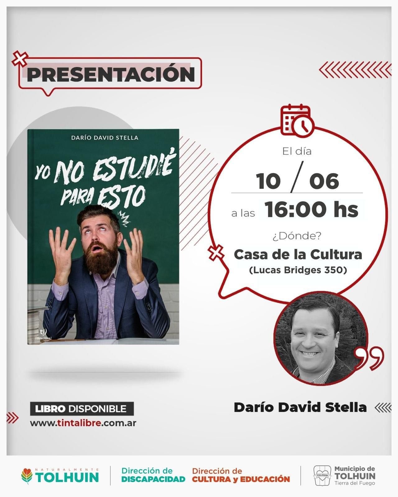 La propuesta es fruto del trabajo coordinado entre las direcciones de Discapacidad y de Cultura y Educación del Municipio de Tolhuin y contará con la presencia del autor del libro Darío David Stella. La actividad será el sábado 10 de junio a las 16:00 hs en la Casa de la Cultura Municipal, (Lucas Bridges 350).