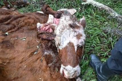 En una recorrida posterior, próximo a la playa, pudo hallar otros restos del animal, constatando que se trataba de un toro de la raza Hereford de alrededor de 6 años, constatando la faltantes de las patas y paletas del animal.