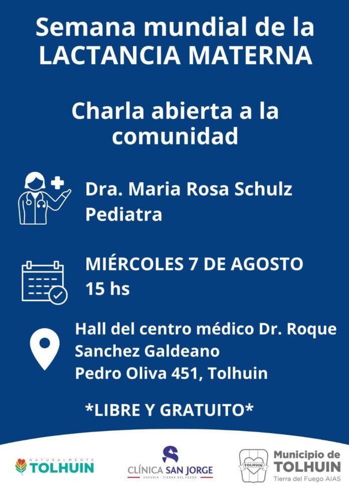 La charla estará a cargo de la Dra. María Rosa Schulz, reconocida pediatra, quien abordará temas fundamentales sobre la lactancia materna; entre lo que se encuentra la preparación para la lactancia, la iniciación, las pautas de alarma y cuándo es necesario acudir urgentemente al pediatra.