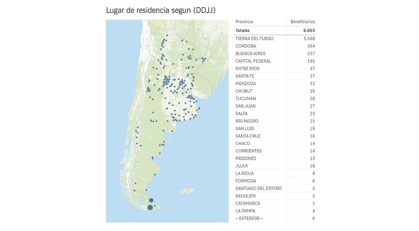 En el exterior residen 6 personas que cobran haber previsional del sistema fueguino, aunque estos últimos no están discriminados en cuanto al país donde residen.