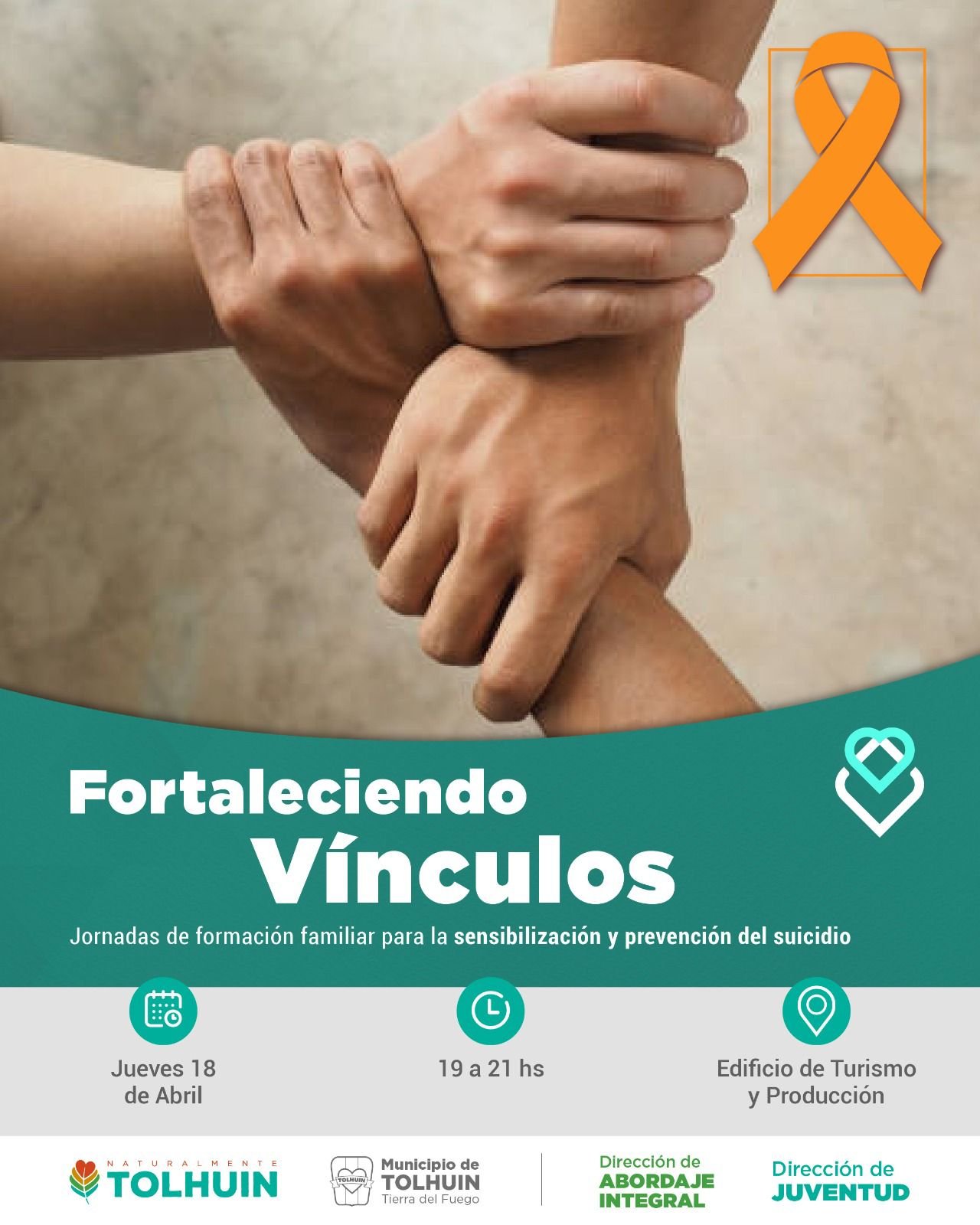 La Dirección de Abordaje Integral y la Dirección de Juventud del Municipio de Tolhuin extendieron la invitación a toda la comunidad a participar en un nuevo encuentro de "Fortaleciendo Vínculos", enfocado en la sensibilización y prevención del suicidio.