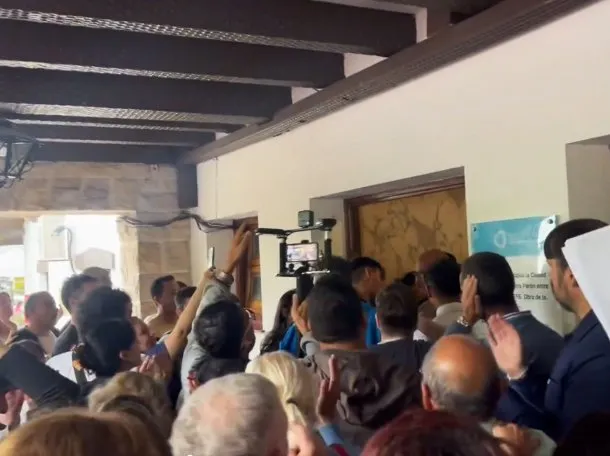 La manifestación comenzó en la calle, pero más tarde los manifestantes rompieron el vallado, la puerta del lugar y entraron por la fuerza entre gritos, cánticos contra el Gobierno y bombos.