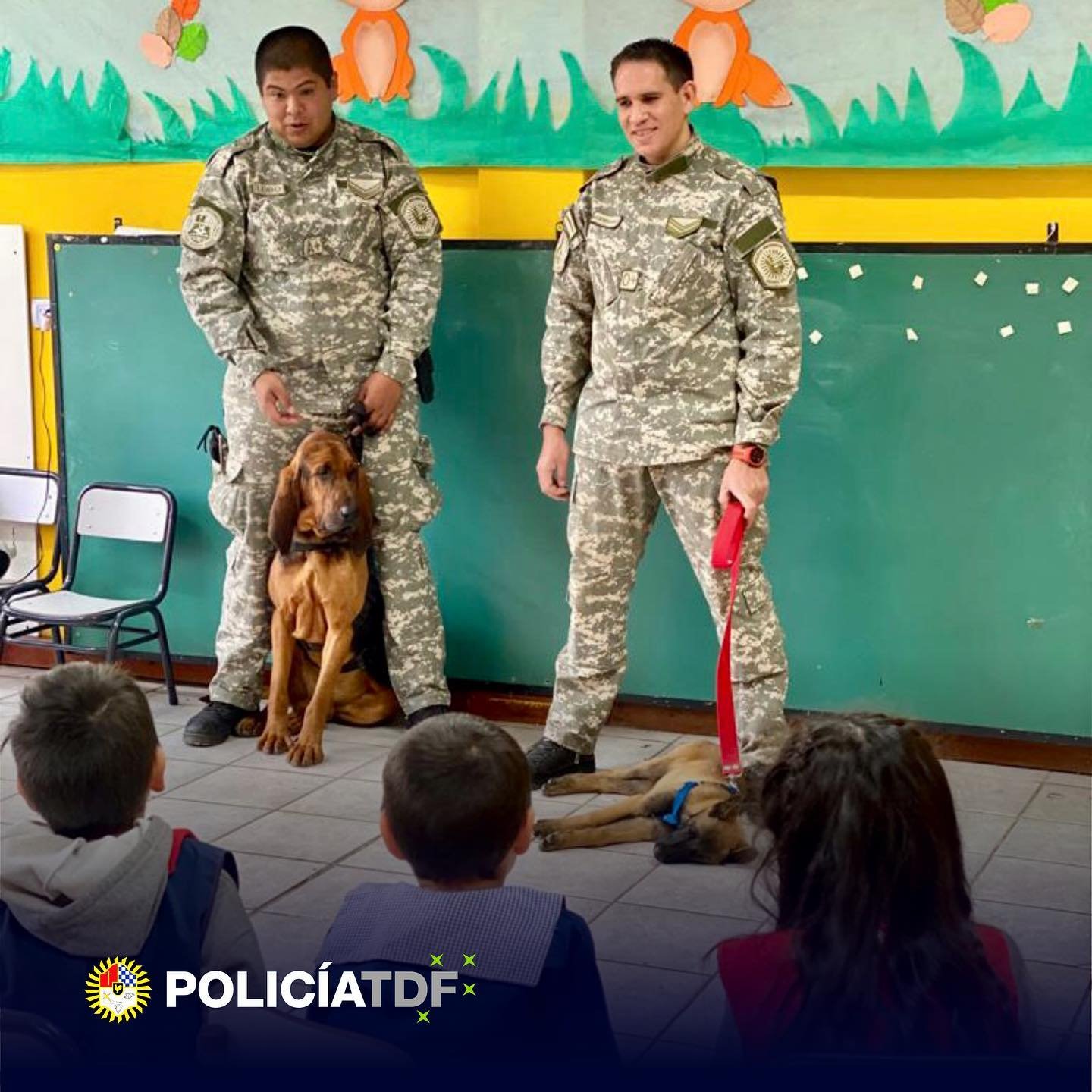 Las niñas y niños conocieron a “Berlín”, y allí se les explicó que el can participa en la búsqueda de personas extraviadas, mostrándose muy entusiasmados ante el acercamiento e interacción con los canes y sus entrenadores.