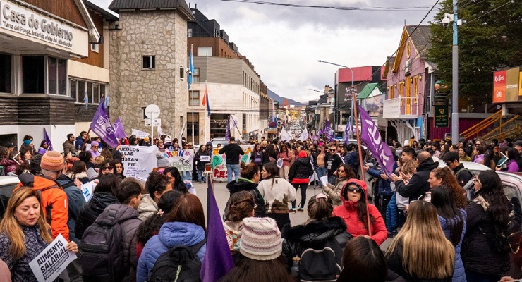 La columna, integrada por Delegaciones de Río Grande, Tolhuin y Ushuaia, partió desde la Escuela Nº 1 y recorrió la avenida Maipú con un pliego de demandas urgentes: tratamiento y sanción inmediata de la Ley de Financiamiento Educativo, reapertura inmediata de las paritarias, y aumento salarial acorde al Salario Mínimo, Vital y Móvil.