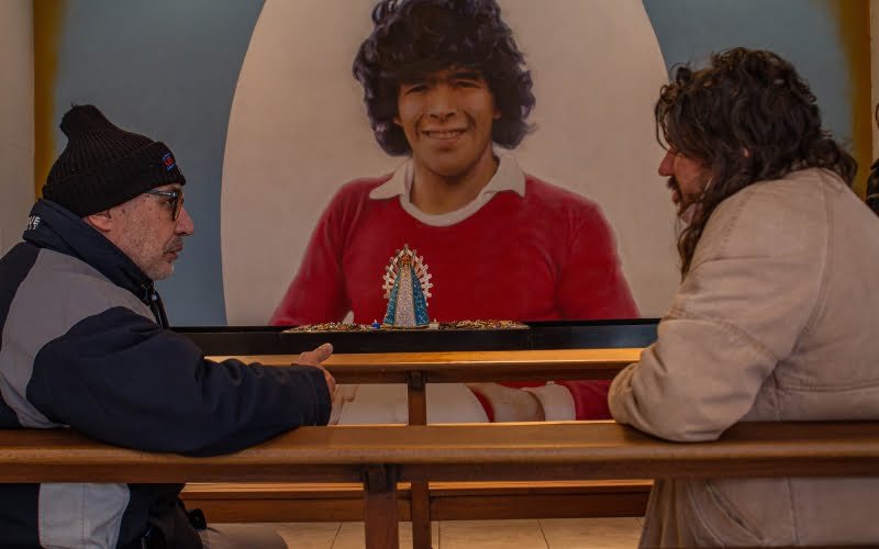Murales con la figura de Diego, pintadas con sus emblemáticas frases y diversas intervenciones artísticas se multiplican en todo el territorio argentino y en otras geografías. Durante la pandemia Boido comenzó a dar forma a un sueño: fotografiar esas imágenes de la devoción de los de abajo por su ídolo, en un recorrido aún inconcluso. D10S había abandonado el planeta. Esta conversación se desarrolló en el santuario que se ubica en el Estadio de la Asociación Atlética Argentinos Juniors, el Diego Armando Maradona, pleno barrio de La Paternal.