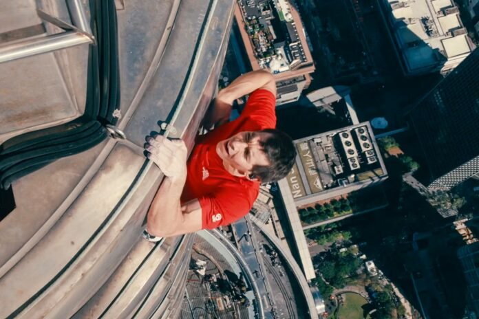 Momento selfie: Honnold se relaja en la punta del edificio de 508 metros de altura