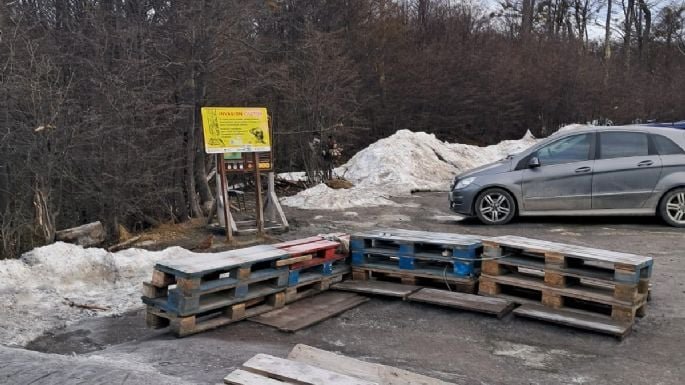 El sendero de Laguna Esmeralda, el principal de entrada al turismo de naturaleza, luce como un espacio tomado por la improvisación. Venta ambulante de comida, fotógrafos persiguiendo turistas, alquileres de esquí ofrecidos sin control y supuestos guías levantando refugios precarios, son parte del paisaje.
