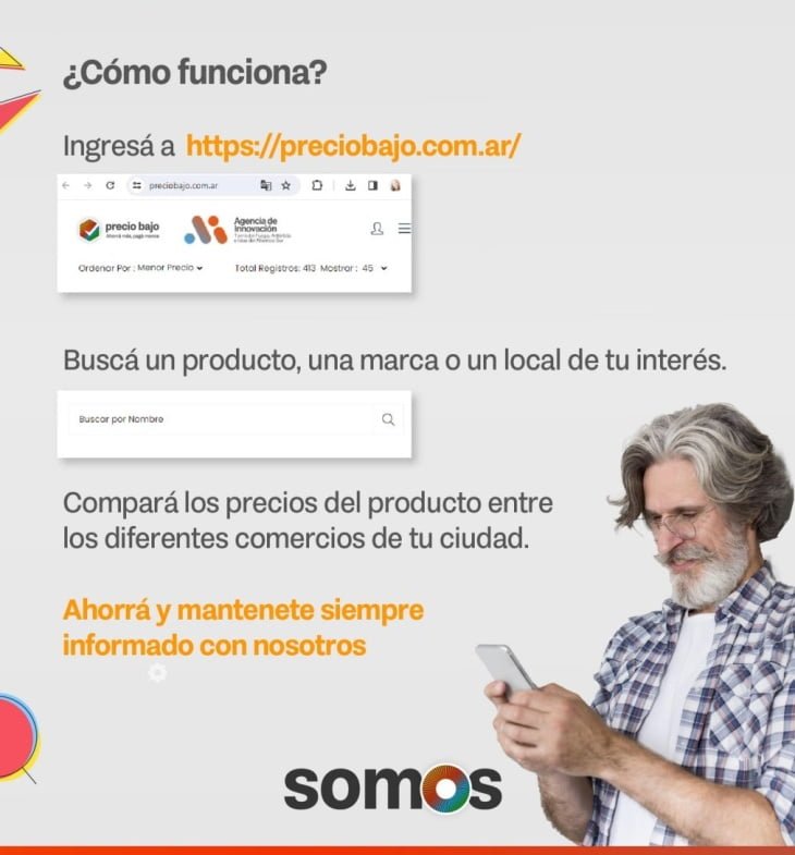 Para conocer el funcionamiento de la plataforma se puede ingresar a: www.preciobajo.com.ar, buscar un producto; una marca o un local de tu interés y comparar los precios entre los diferentes comercios de la ciudad.