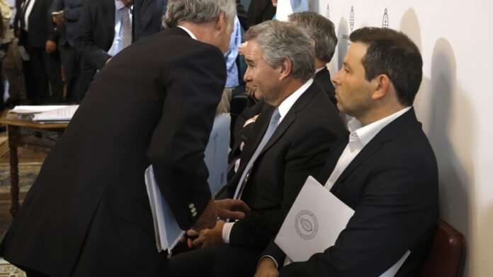 La licitación se dio en un clima enrarecido por la pelea de Milei y Caputo con los bancos, que siguen sin convalidar las proyecciones económicas oficiales que pintan un escenario de baja de la inflación y del dólar que las entidades financieras no comparten.