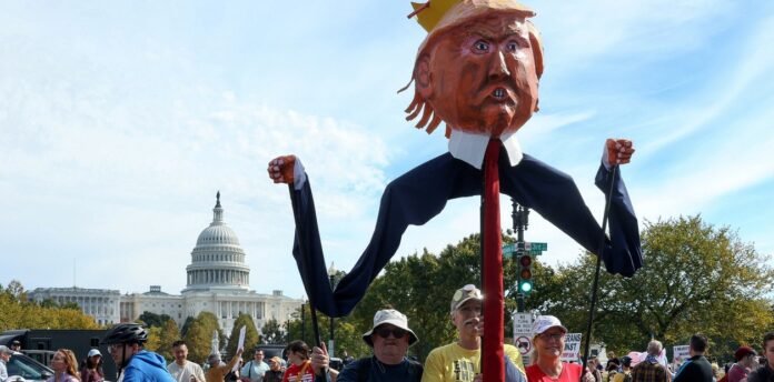 El mandatario sugirió además que los demócratas retrasaron las negociaciones presupuestarias para reabrir la Administración federal, paralizada desde el 1 de octubre por falta de fondos, con el fin de fomentar la protesta.«Sin reyes», la marcha en Washington, DC. Foto: REUTERS