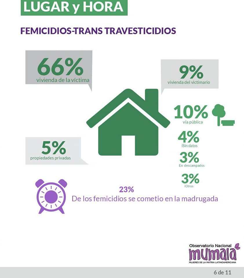 En el caso de Mumalá, registró 170 femicidios, lo que da un promedio de uno cada 34 horas, y en el 55 por ciento de los casos los crímenes fueron cometidos por parejas o exparejas de las víctimas.