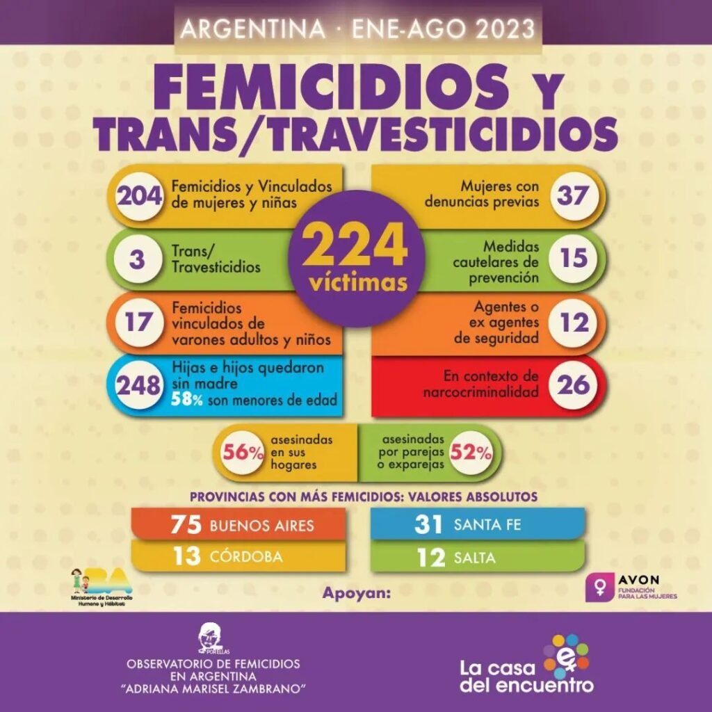 Mumalá, en tanto, entidad que también realiza estadísticas propias al igual que el Observatorio Lucía Pérez y Ahora que Sí Nos Ven (Aqsnv), contabilizó 170 femicidios desde el 1° de enero al 31 de agosto.