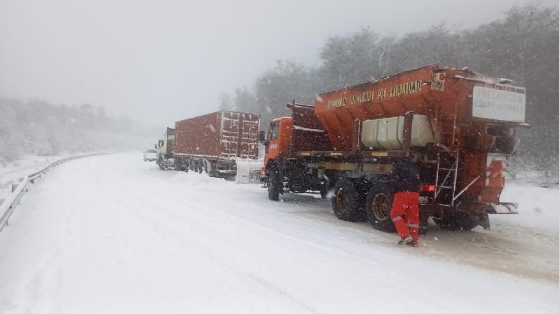 El temporal que impera desde hace horas en la provincia de Tierra del Fuego ha activado un llamado de precaución de las autoridades, a raíz de la peligrosidad para circular por la Ruta Nacional N°3 producto de la nieve.