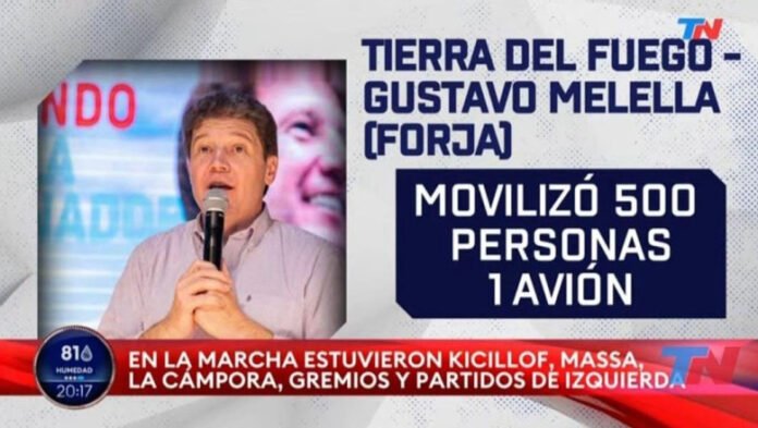 El Gobernador de Tierra del Fuego Gustavo Melella le respondió al canal TN que anoche en un informe sobre la movilización a Plaza de Mayo en apoyo a Cristina Fernández de Kirchner aseguró que el mandatario fueguino movilizó desde esta provincia 500 personas en un avión.
